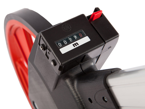 - Plastic measuring wheel with a robust metal stand, easy to fold open backwards.