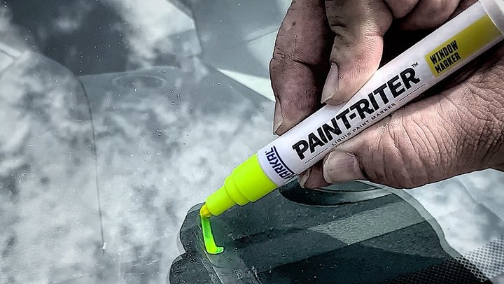 The Paint-Riter® Window Marker by Markal® is a specially engineered, smooth-marking liquid paint formula that creates temporary brilliant marks on windows, glass and automobiles. Marks are safely removed with water and leave no ghosting or residue, making this an essential tool for auto body shops, car rental lots, dealerships and more.